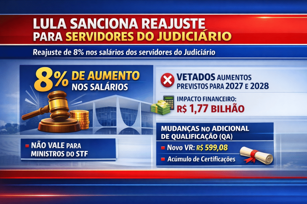 ⚖️💰 Lula sanciona reajuste de 8% para servidores do Judiciário e veta aumentos futuros