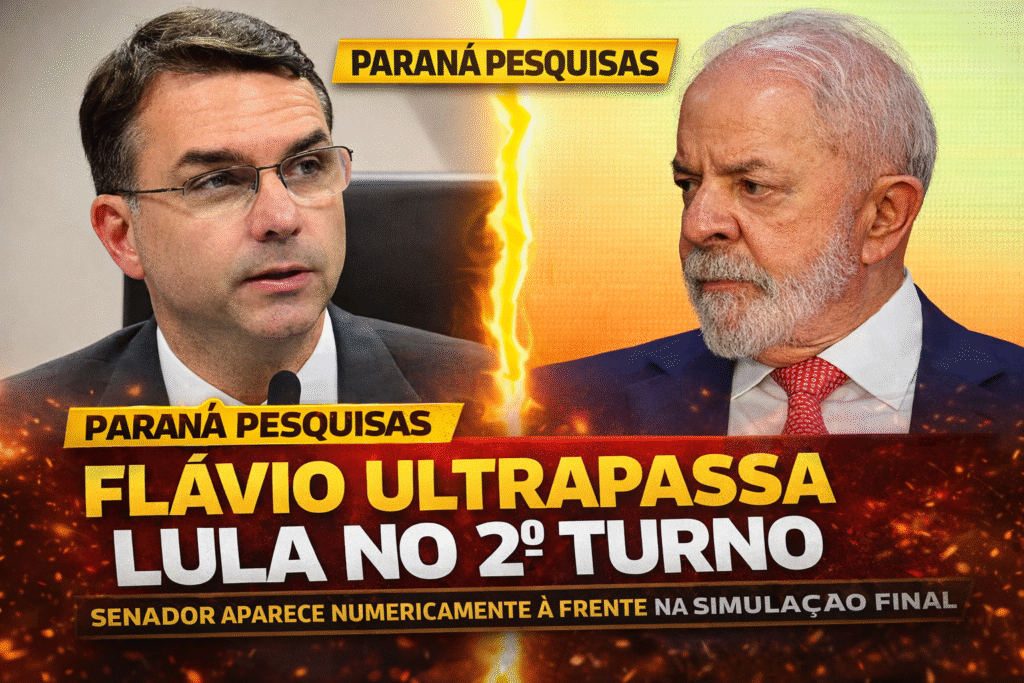 Pela primeira vez na sĂ©rie de pesquisas do instituto ParanĂĄ Pesquisas para a eleição presidencial de 2026, o senador FlĂĄvio Bolsonaro (PL-RJ) aparece numericamente Ă  frente do presidente Luiz InĂĄcio Lula da Silva (PT) em um cenĂĄrio de segundo turno.