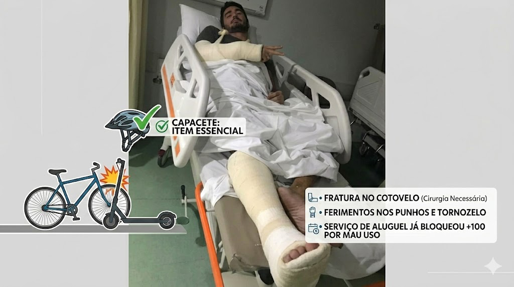 VĂ­tima critica uso irresponsĂĄvel de patinetes elĂ©tricos: “Se nĂŁo fosse o capacete, poderia ser pior”