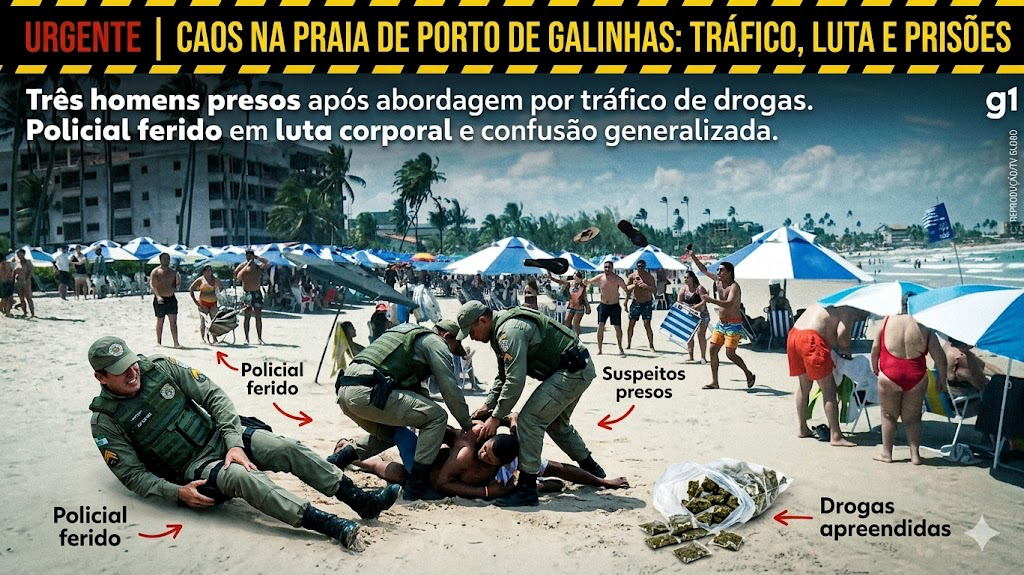 🚨 Confusão em Porto de Galinhas: abordagem por tráfico termina com três presos, policial ferido e tumulto na praia