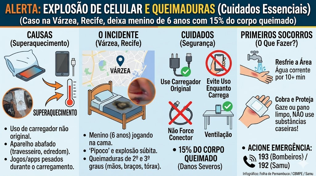 🚨 EXPLOSÃO DE CELULAR DEIXA CRIANÇA QUEIMADA NO RECIFE E ACENDE ALERTA SOBRE RISCOS AO CARREGAR APARELHOS