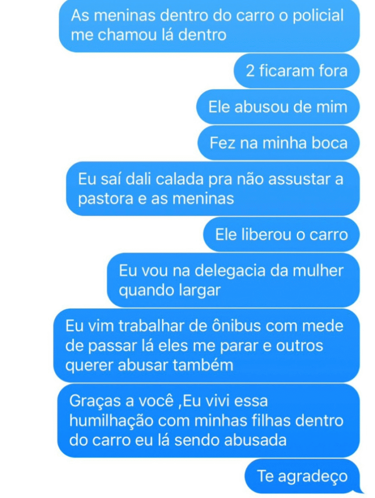 🚨 “GRAÇAS A VOCÊ, EU VIVI ESSA HUMILHAÇÃO”: MENSAGENS REVELAM DESESPERO DE MULHER QUE DENUNCIA ESTUPRO COMETIDO POR PM EM POSTO RODOVIÁRIO