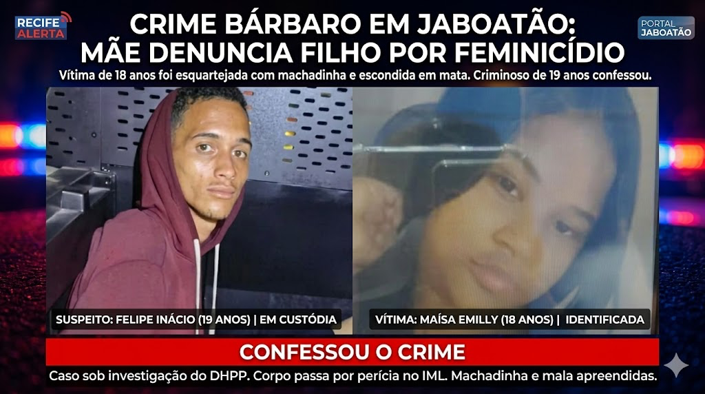 Um jovem de 19 anos foi preso por feminicídio após confessar o assassinato da própria esposa, de 18 anos, em Jaboatão dos Guararapes, no Grande Recife. O crime só foi descoberto depois que a mãe do suspeito procurou a polícia e denunciou o filho.