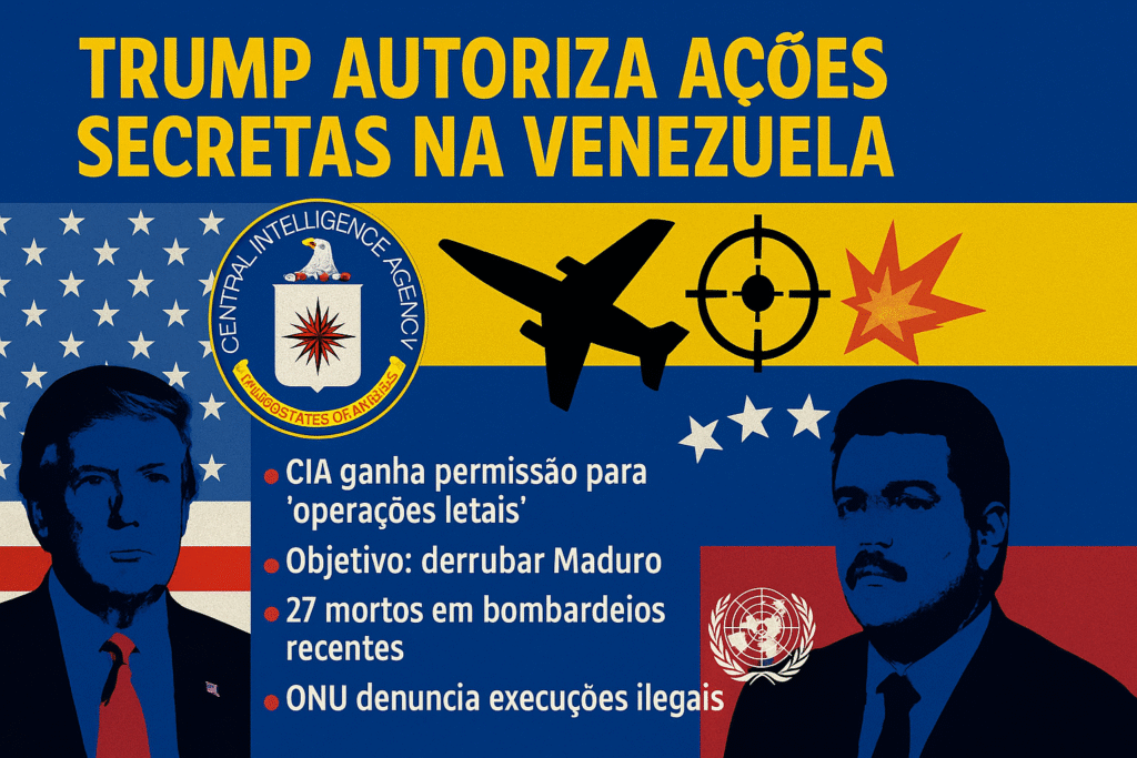 O presidente Donald Trump confirmou que autorizou a CIA a realizar ações secretas na Venezuela, que podem incluir “operações letais” — ou seja, ataques diretos a alvos do governo de Nicolás Maduro.