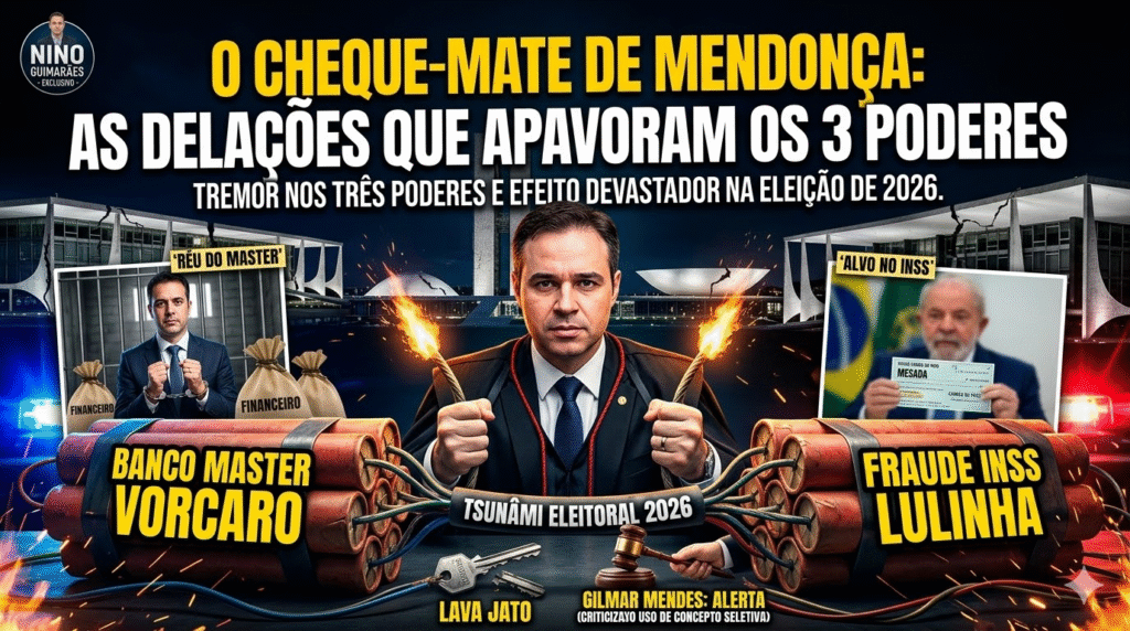 O Brasil pode estar a menos de dois meses de uma das explosões políticas mais devastadoras de sua história recente. O ministro André Mendonça, do Supremo Tribunal Federal, acumula a relatoria dos dois inquéritos mais quentes do país: o do Banco Master, que envolve fraudes financeiras bilionárias e conexões com ministros do próprio STF, e o do INSS, que apura um esquema de descontos ilegais com ramificações que chegam perto do Palácio do Planalto.