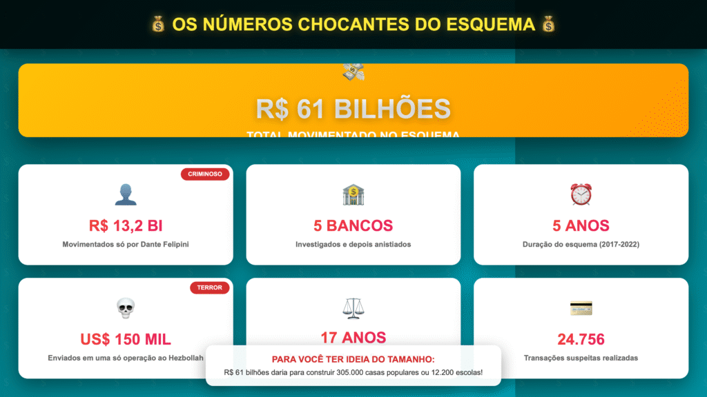 Os R$ 61 bilhões que passaram por esse esquema poderiam ter construído milhares de escolas, hospitais ou casas populares. Em vez disso, financiaram crime e terror.