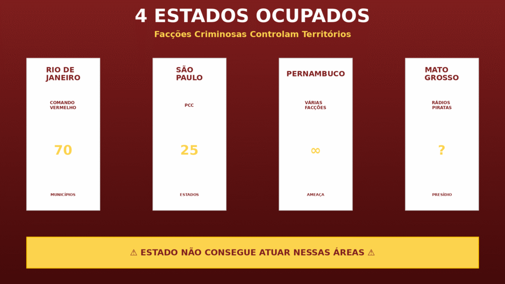 Facções criminosas estão literalmente fechando cidades no Brasil. Não estamos falando de roubo ou tráfico: estamos falando de organizações criminosas que proíbem o Estado de entrar em seus territórios.