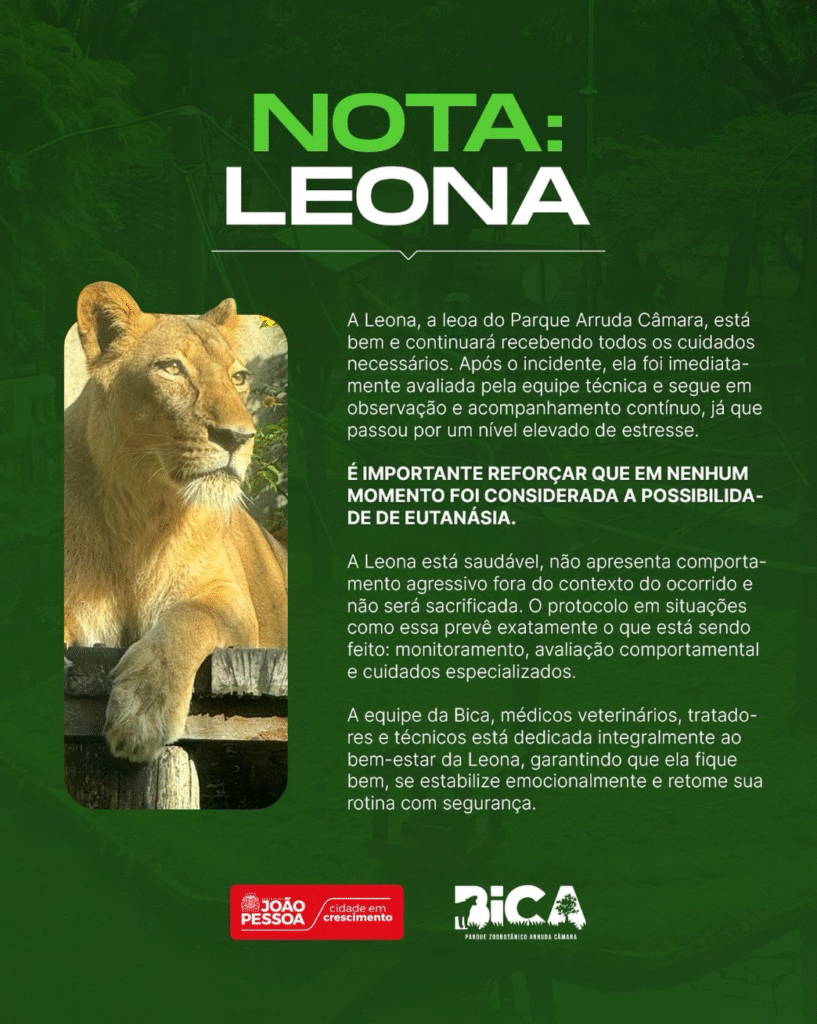 HOMEM INVADE JAULA E É MORTO POR LEOA EM ZOOLÓGICO DE JOÃO PESSOA