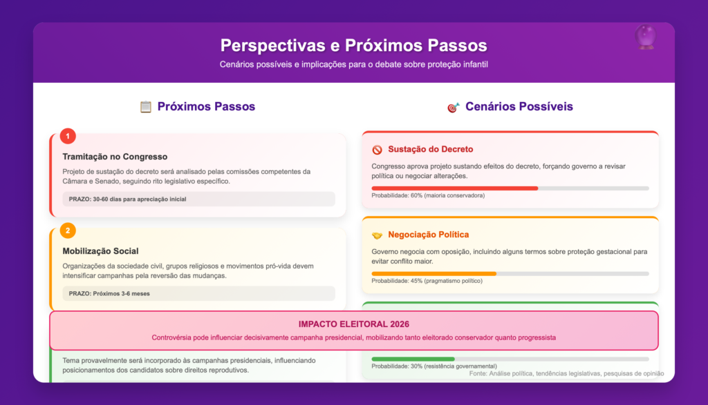 O Congresso Nacional deve analisar as propostas de sustação do decreto, em processo que pode durar meses. Enquanto isso, a nova política continua em vigor, direcionando recursos e programas para crianças de 0 a 6 anos.