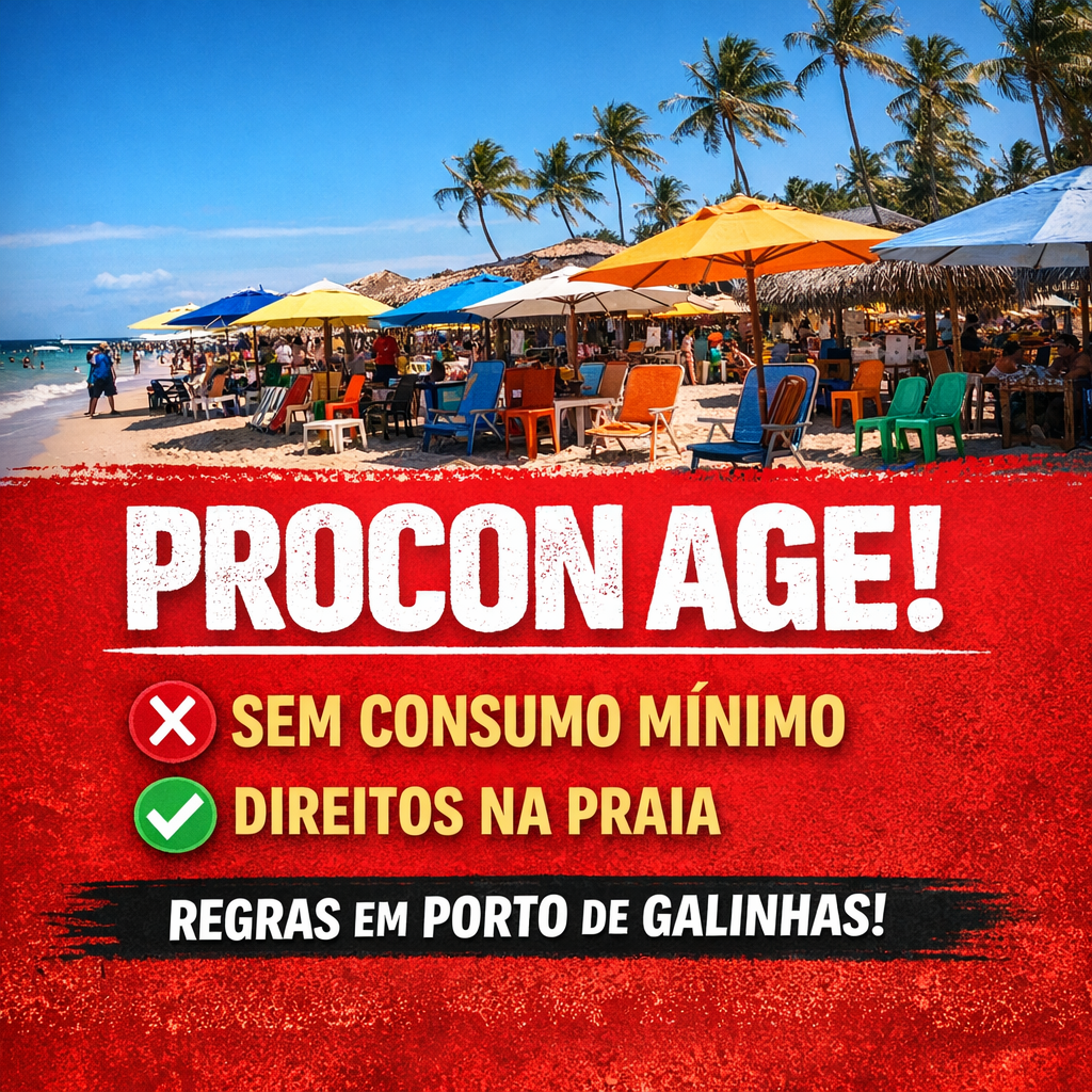O Procon reforçou que é ilegal exigir consumo mínimo para que o cliente utilize mesas, cadeiras ou guarda-sóis nas praias. A prática, conhecida como venda casada, é proibida pelo Código de Defesa do Consumidor.