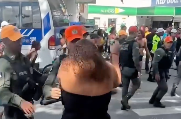 VÍDEO: Mulher agride PM e leva golpes de cassetete em confusão com mais de dez policiais após show de Raphaela Santos