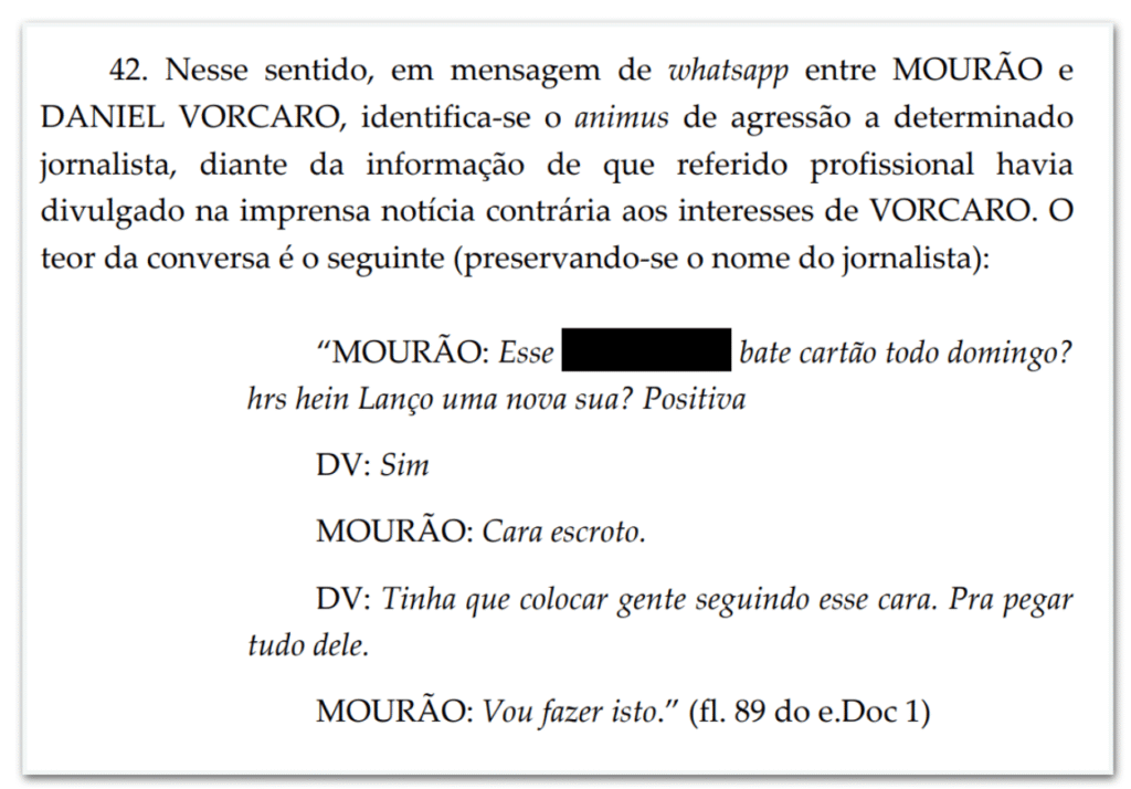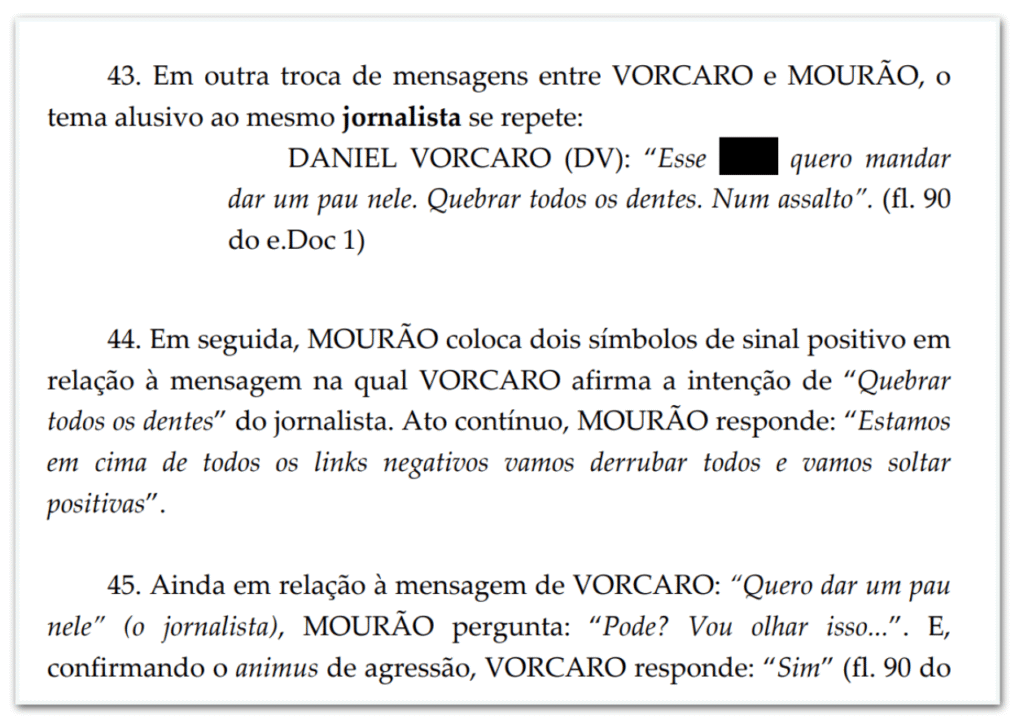 Trechos de conversas atribuídas a Vorcaro, obtidas pela PF, mostram ameaças contra jornalistas e funcionários, monitoramento de adversários e ordens para intimidar alvos: